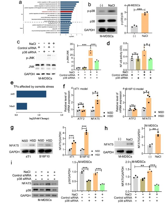 Figure 2. High-Salt Diet Promotes the Differentiation of M-MDSCs into Anti-Tumor Macrophages by Activating the Regulating Axon of P38 / MAPK-NFAT5