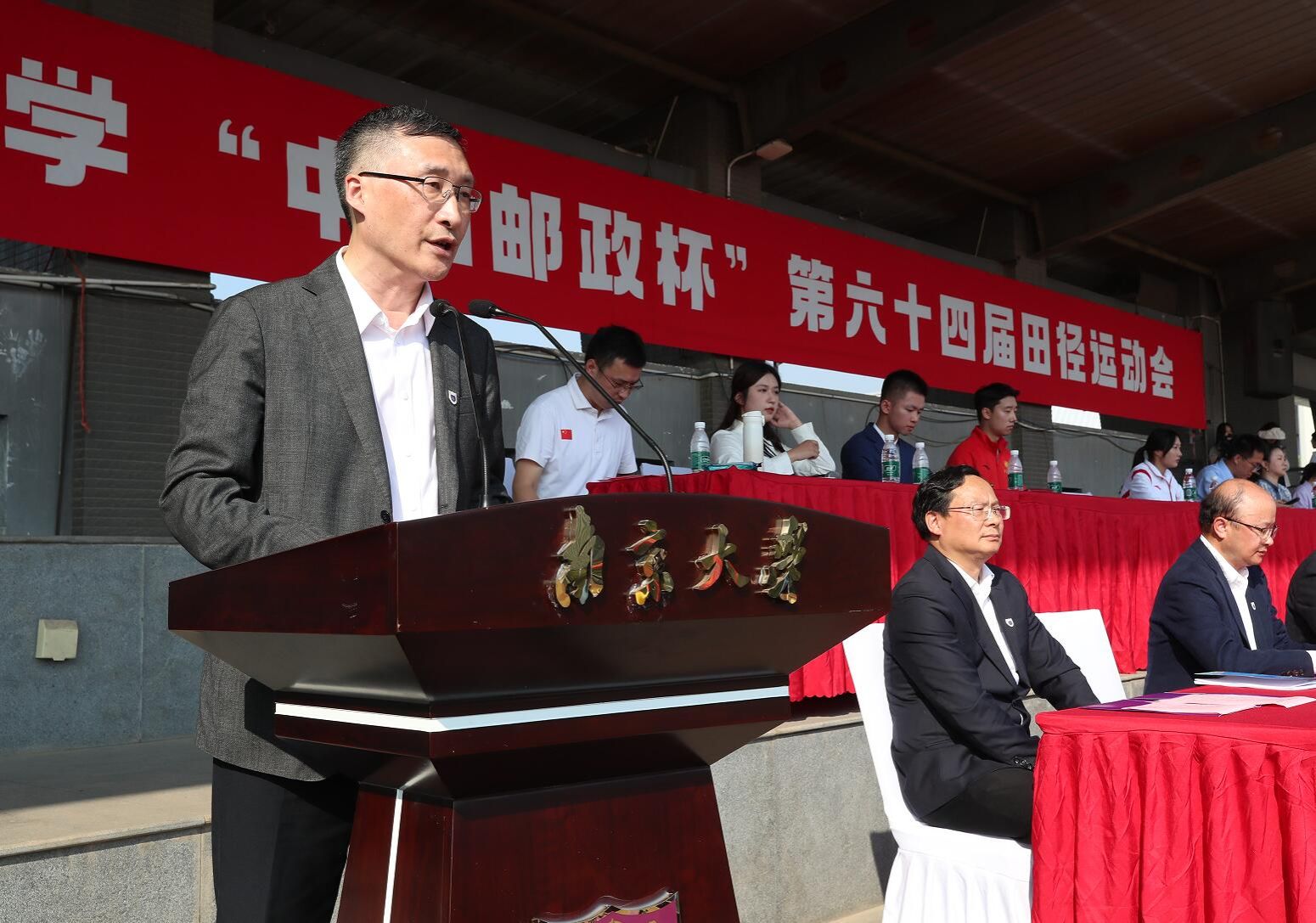谭铁牛宣布凯发k8官网第64届“中国邮政杯”田径运动会开幕,并为本届校运会鸣枪发令。