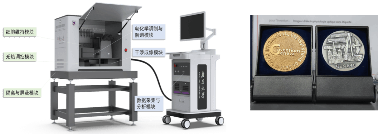 在此基础上,团队提出了“高通量免标记神经成像仪”的原创仪器设计理念,并申请了国家发明专利(CN117388152A)和国际专利(WO2025/077331);该仪器设计的关键技术获得第49届日内瓦国际发明展金奖,第50届日内瓦国际发明展银奖等奖项。该仪器设计指标在国际上具有领先优势,其中单离子通道灵敏度和离子通道类型区分指标为目前能实现的唯一方案。在测量原理验证后,研究团队将继续攻关仪器研制。该仪器如能成功,将为我国神经科学和脑科学研究提供原创的高端仪器,也为我国在国际上这一领域的激烈角逐中抢占先机。