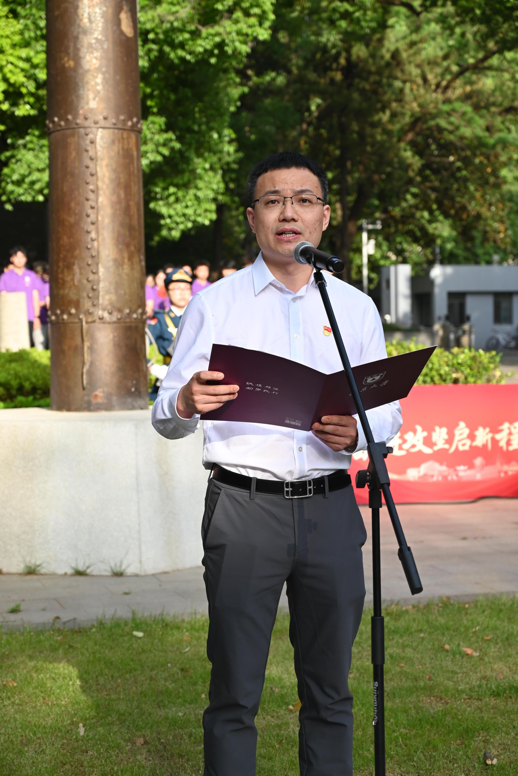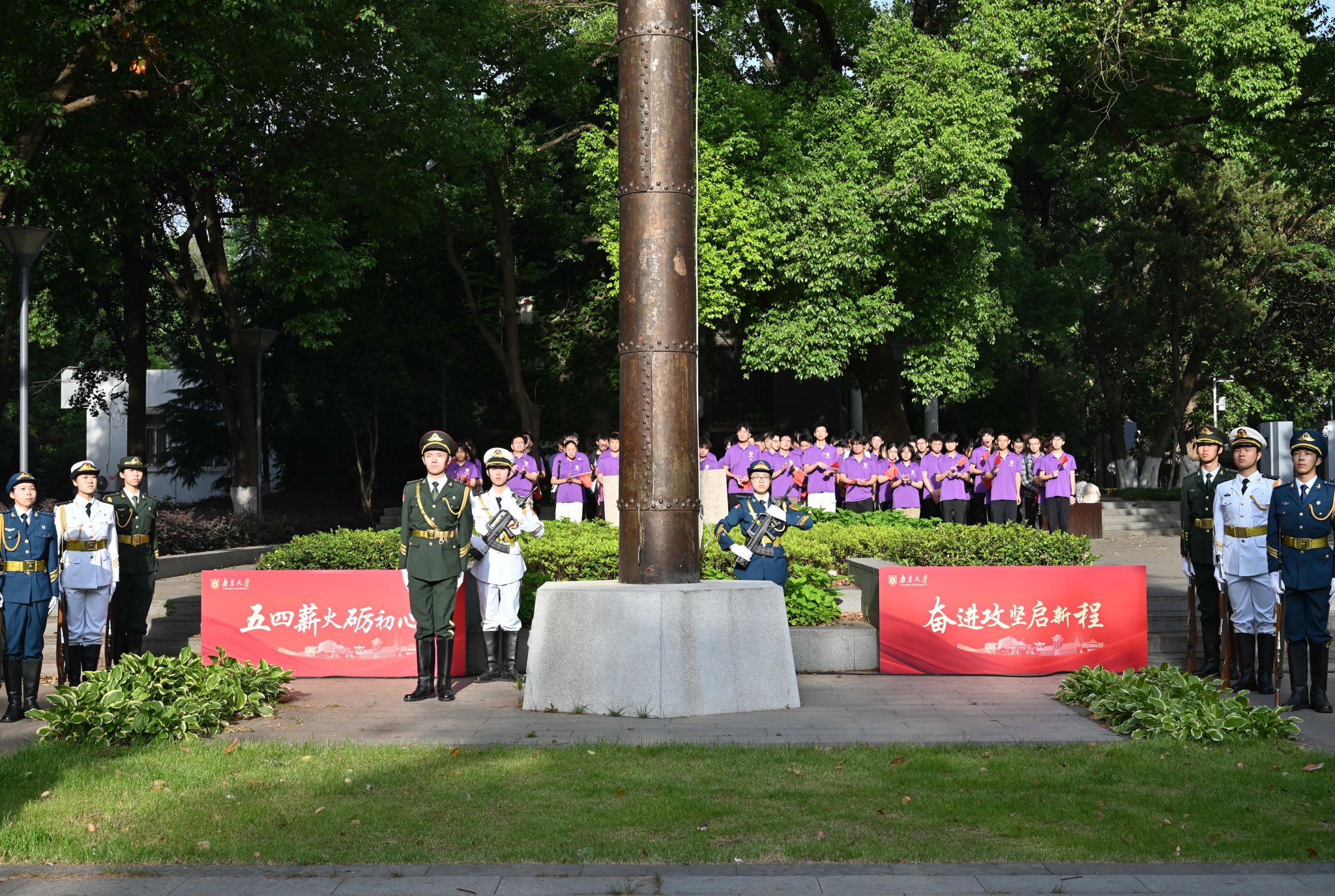 为大力弘扬五四精神,激励广大青年学子砥砺前行、勇攀高峰,5月7日,毓琇书院于鼓楼校区大纛坪国旗广场举行“五四薪火砺初心,奋进攻坚启新程”主题团日暨升旗仪式。第28届中国青年五四奖章获得者、现代工程与应用科学学院教授谭海仁,校党委学生工作部部长李浩,本科生院院长、新生学院执行院长王骏,新生学院党委书记、常务副院长施林淼,新生学院团委书记蒲婧翔,以及毓琇书院全体师生、党员代表参加升旗仪式。