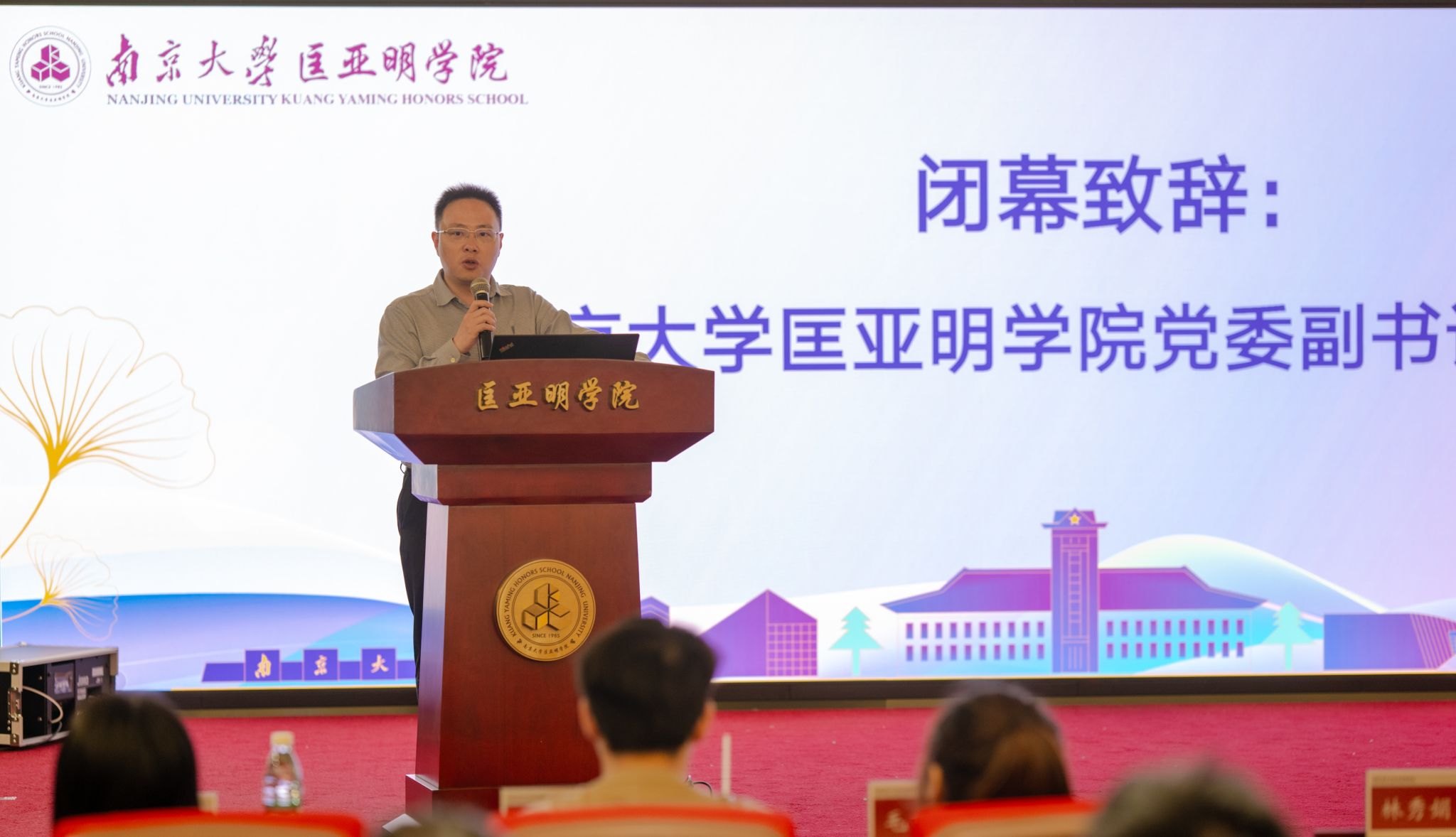 闭幕式上,匡亚明学院党委副书记周安发表总结讲话。他回顾了峰会创办历程,强调了四校协作在人才培养中的重要意义,引用“独行快,众行远”,鼓励青年在交流中共生共进。他寄语青年要敢于“破圈”、善于“共生”、勇于“跨界”,以青春之我书写时代华章,坚定信念,奔赴热爱,共创未来。随后,四校荣誉学院学生代表分别汇报了各分会场的讨论成果。